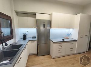 Renovated (2025) 123sq.m. apartment on a raised ground floor, for rent. The apartment has a closed circular patio for any personal use. It includes an open kitchen-living room with fireplace. It has 3 bedrooms (1 master bedroom with its own bathroom and 2 bedrooms with a loft for storage), stove, oven, dishwasher, washing machine and a built-in wardrobe in the hallway for additional storage. The apartment has air conditioning and belongs to the PEA A energy class.